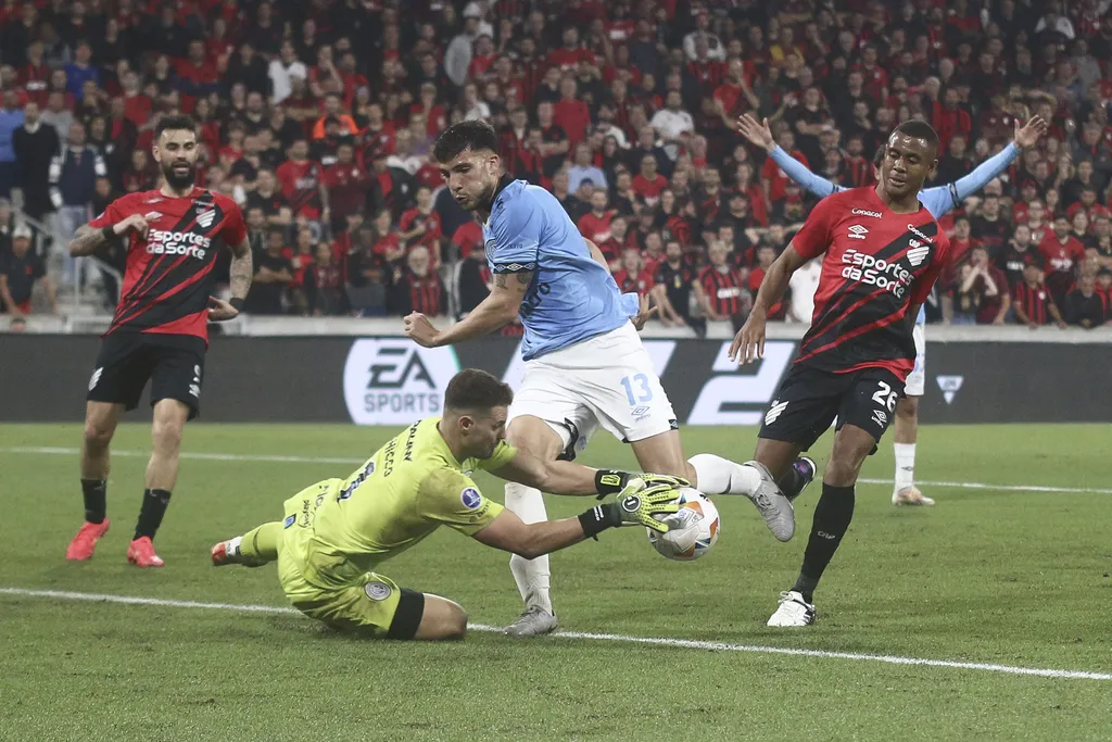 O goleiro Léo Linck ainda evitou o empate com uma sequência de defesas na mesma jogada. Ele espalmou o chute de fora da área do meia Metilli e depois salvou a cabeçada de Chavarría.