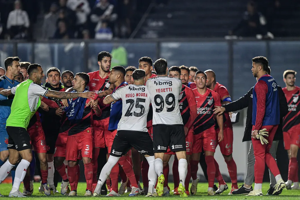 Um segurança do Vasco causou uma confusão generalizada ao apito final da derrota do Athletico de virada por 2 a 1. O funcionário do clube carioca, identificado como ‘Betinho’ na transmissão do SporTV, foi alvo de irritação dos jogadores rubro-negros após o término da partida, válida pela 24ª rodada e realizada nesta segunda-feira (26).