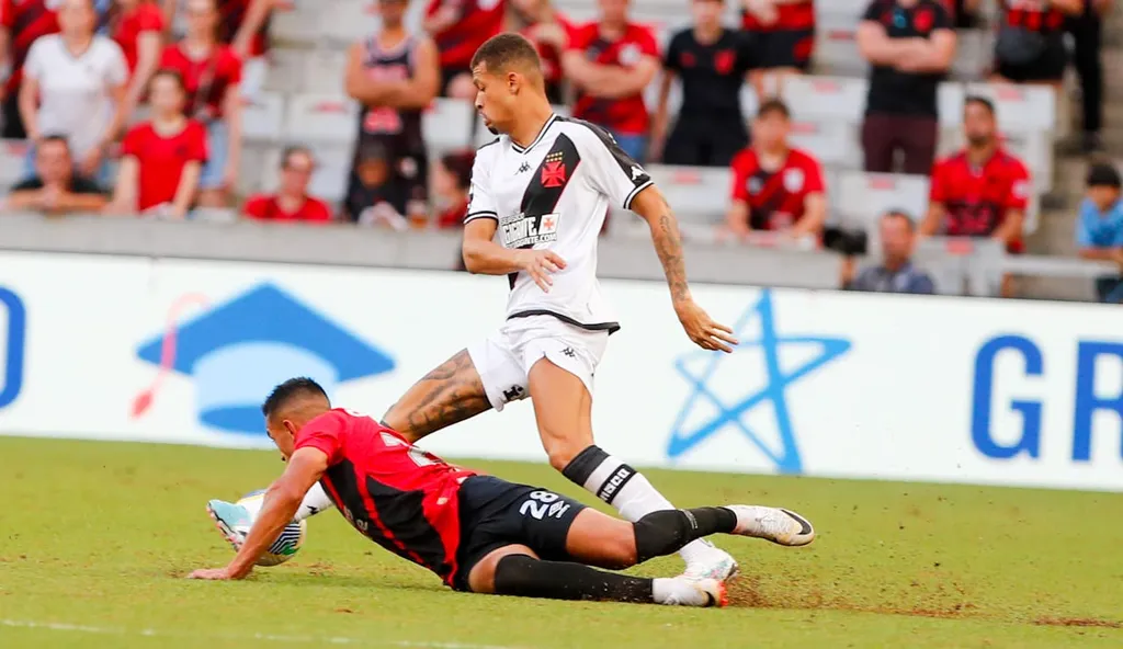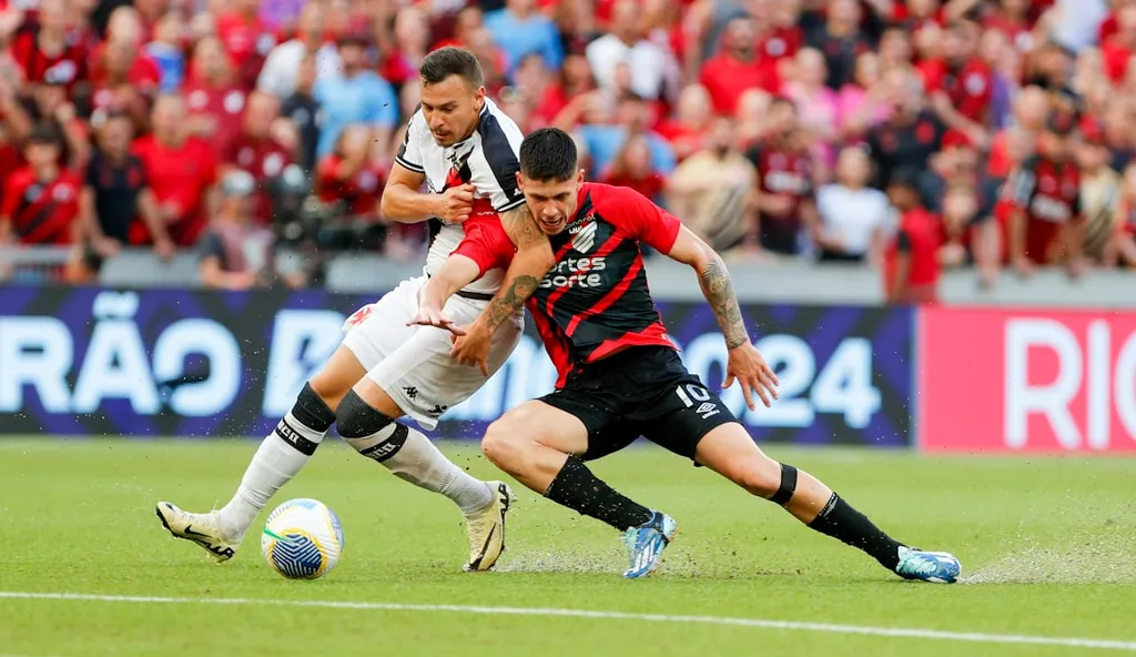Se a trave foi protagonista na primeira etapa, no segundo tempo ela impediu um golaço de Zapelli logo no começo. O Furacão diminuiu o ritmo, mesmo assim criou as melhores chances. Nikão, que voltou a atuar na Ligga Arena, finalizou para fora. O Vasco chegou a empatar, mas Vegetti estava impedido.