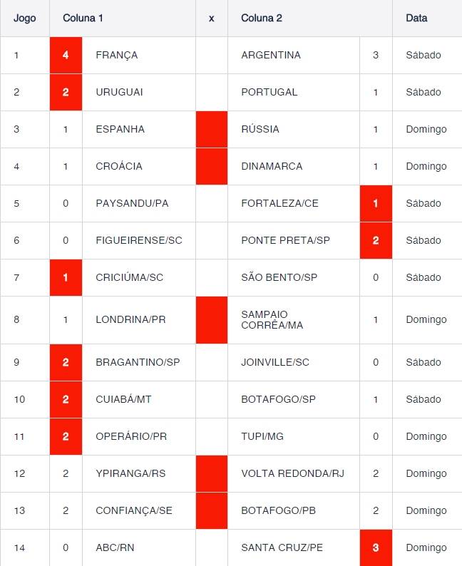 Na semana passada, ninguém cravou os 14 resultados. Veja, no fim do post, o resultado do concurso anterior (807).