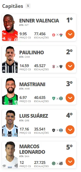 Enner Valencia, atacante (Internacional): Depois de uma sequência de jogos marcando gols, o atacante fez apenas 2,20 pontos na rodada passada e desvalorizou -1,62. Diante do Flu, a tendência é que participe bastante ofensivamente e possa valorizar. O mínimo é de 2,39 pontos aproximadamente.