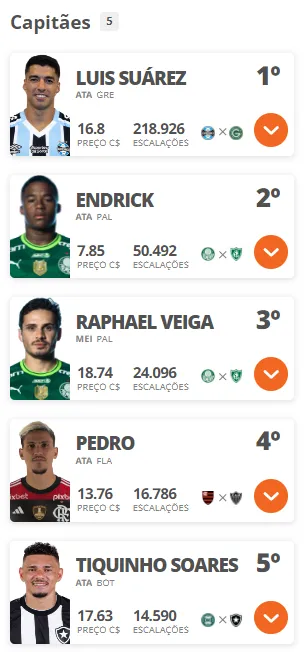 Mais escolhidos como capitães na 36ª rodada: