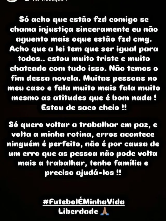 O jogador do Coritiba se pronunciou por meio de suas redes sociais sobre a novela envolvendo a sua volta ao futebol. “Não temos o fim dessa novela. Só quero voltar a trabalhar em paz”, disse Manga. Confira a declaração completa abaixo: