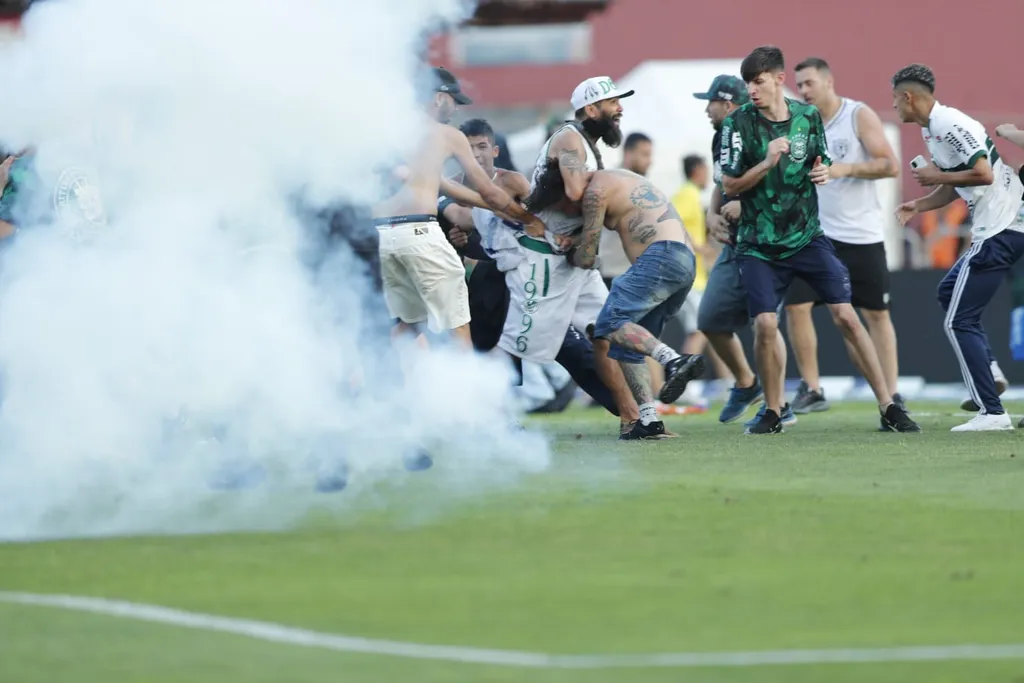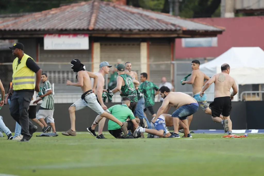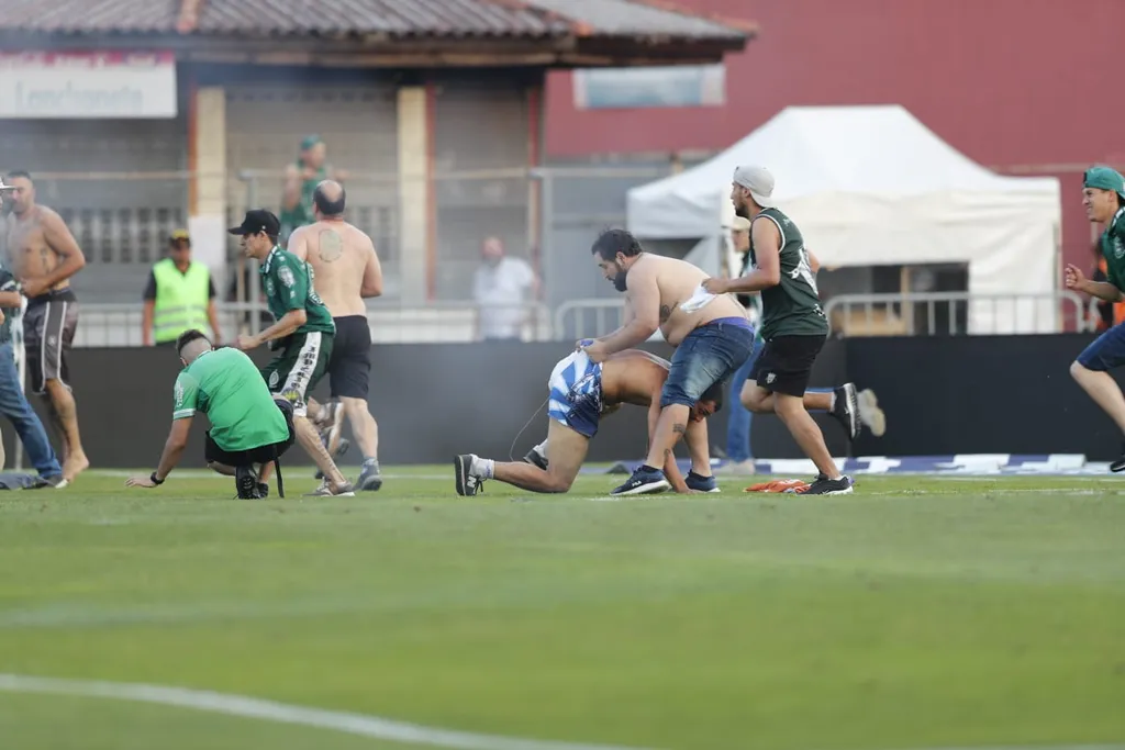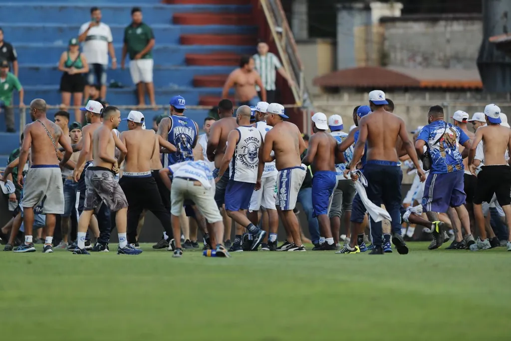 O gol ainda estava sendo revisado pelo VAR, quando torcedores da Raposa pularam os alambrados da torcida visitante e invadiram o campo de jogo. Do outro lado, torcedores do Coxa também invadiram o campo e houve confronto.