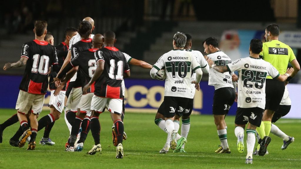 A atitude gerou tumulto imediato. Titulares e reservas invadiram o gramado, e o próprio lateral do Coxa precisou ser contido por companheiros, que o abraçaram para evitar uma reação. A confusão seguiu também na área do banco de reservas. O técnico Alllan Aal, do Botafogo-SP, e o auxilar do Coritiba, Guila Bosle, receberam cartões amarelos.