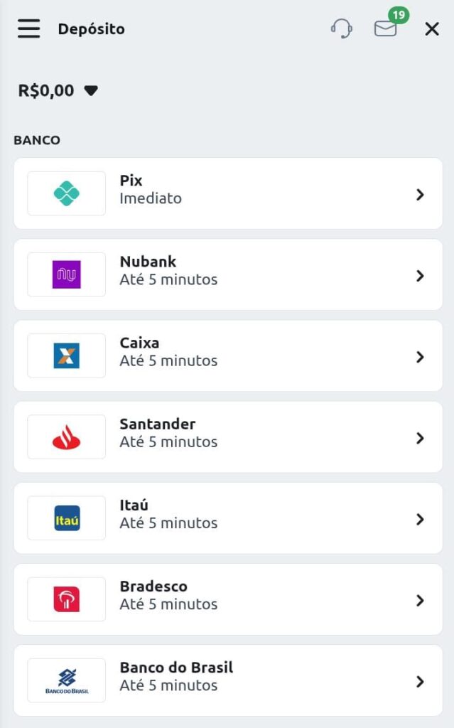 Depósito mínimo de R$5