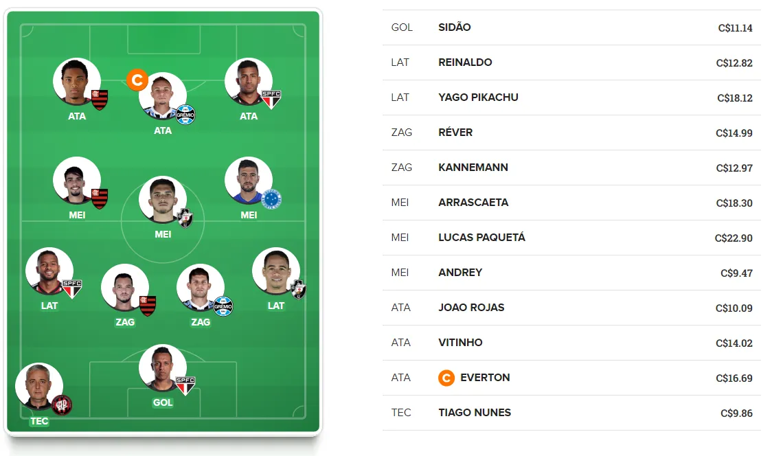 Sugestão de time 2 para pontuação (bons e baratos): C$ 107,94