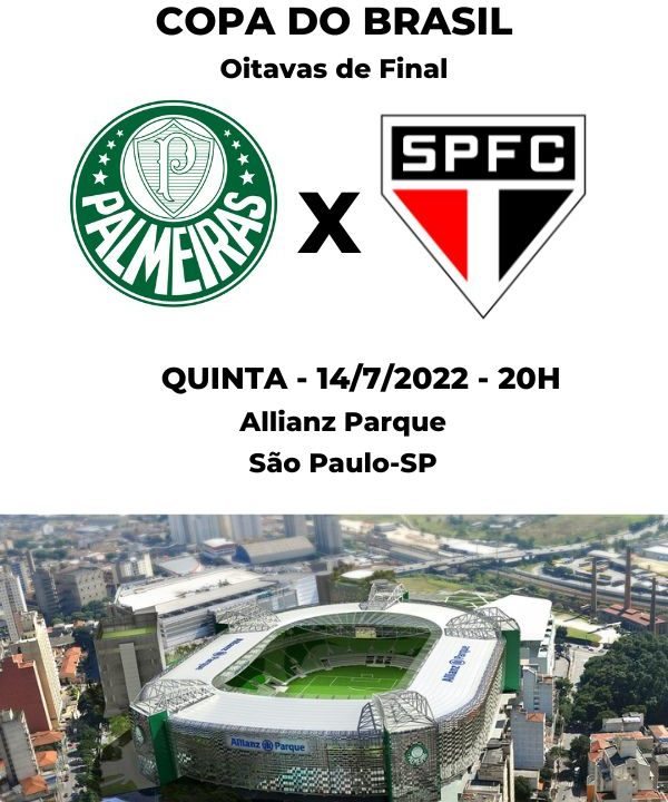Palmeiras x São Paulo acontece nesta quinta-feira (14), às 20h, no Allianz Parque, pelas oitavas de final da Copa do Brasil 2022. No primeiro duelo, no Morumbi, vitória do Tricolor por 1 a 0, com gol de Patrick.