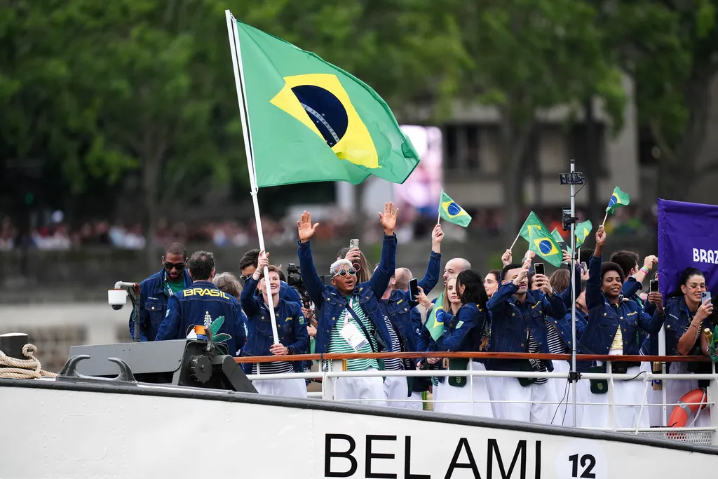 + No barco Bel Ami, delegação do Brasil desfila no rio Sena na abertura da Olimpíada de Paris 2024