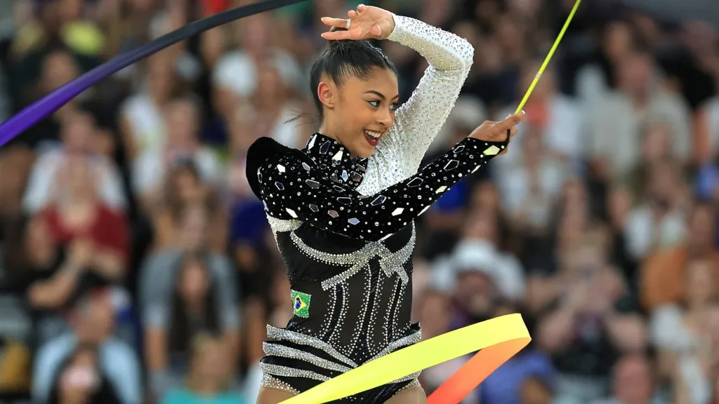 Barbara Domingos é a primeira brasileira finalista na competição individual de ginástica rítmica das Olimpíadas. Nesta quinta-feira, em Paris, a atleta conquistou notas altas nas apresentações dos quatro aparelhos e foi à decisão da disputa por medalha depois de ficar entre as dez melhores ginastas do dia.